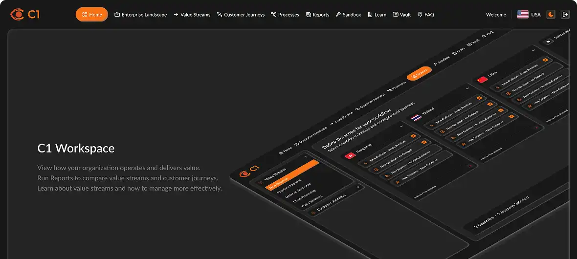 A clear, guided flow that shows leaders how work really moves, where value gets stuck, and how to redesign processes that deliver customer outcomes faster.